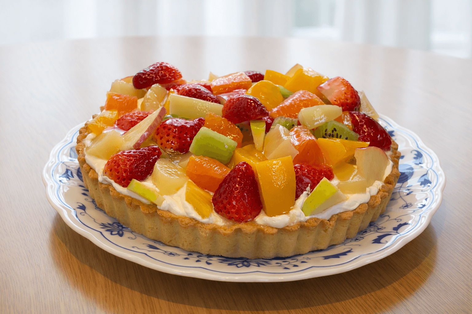 フルーツを一つずつ並べていく時間がとても楽しくて、見た目も華やかなタルトになりました。自分のために…